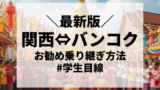 この記事では東京バンコク間の乗り継ぎ方法を紹介していますが、当ブログでは関西からバンコクへ安く行く方法を紹介する記事も投稿しております。発着地が違えばおすすめルートも異なってきますので、ぜひこちらの記事も併せてご覧ください。